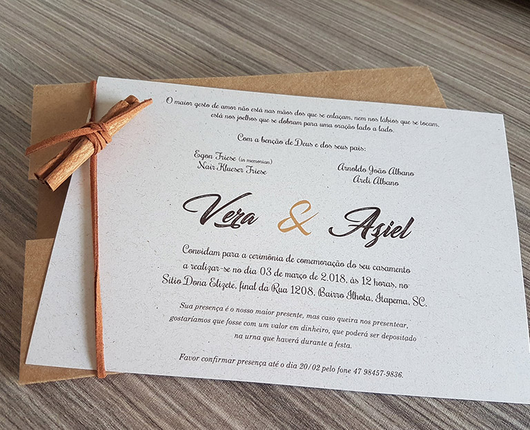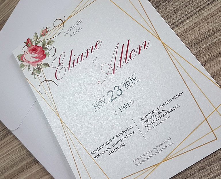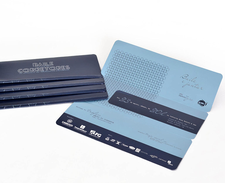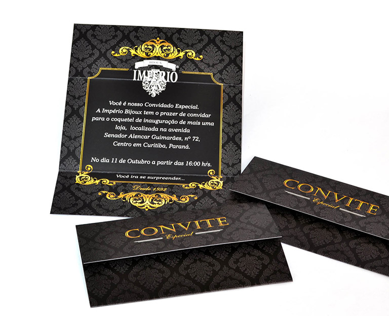 Convites para aniversários, casamentos, formaturas, inaugurações e festas empresariais.
