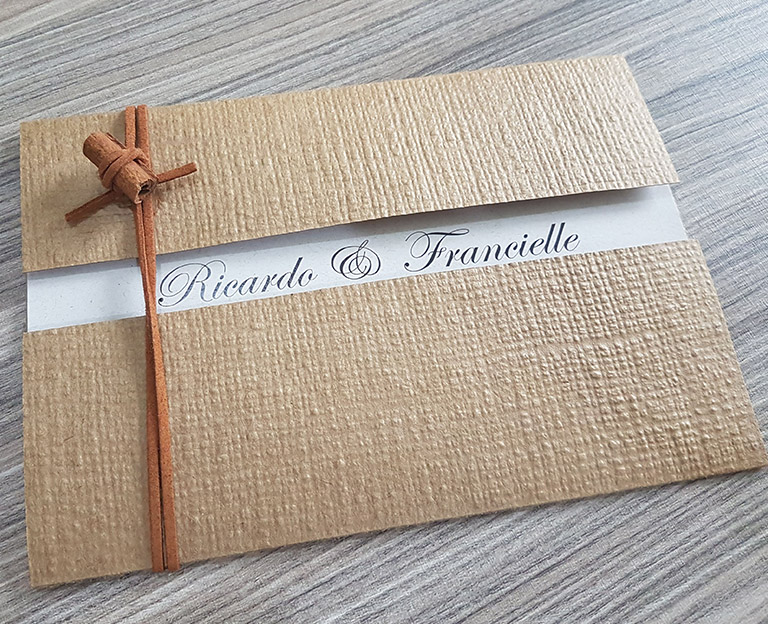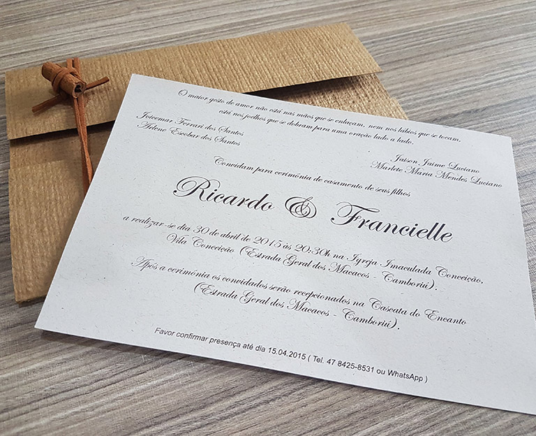 Temos diversas opções de papéis, como couchê, kraft, reciclado e perolados, podendo ser acompanhados ou não de envelopes e tags.