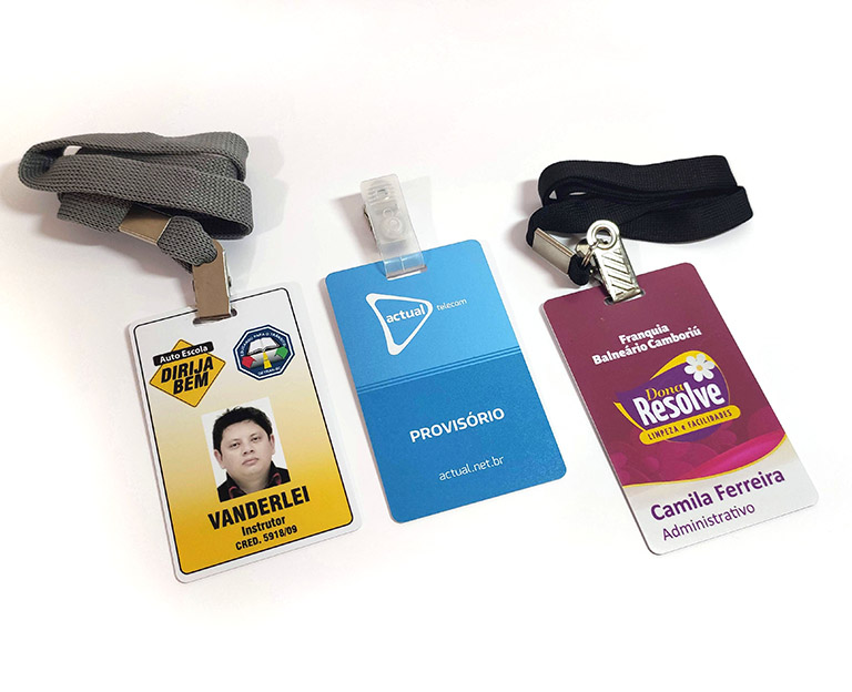 Impressão de crachás PVC em alta resolução. Identifique sua equipe e controle o acesso com a utilização do crachá. Podem ser acompanhados de presilha ou cordão.